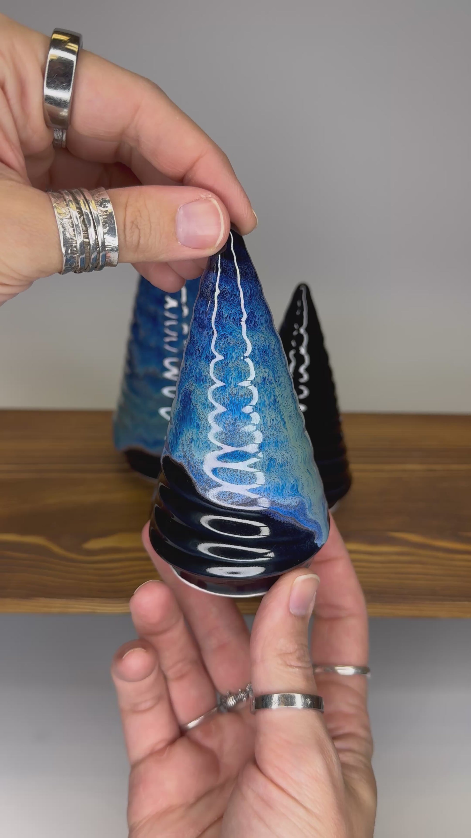 These decorative Christmas trees are made from stoneware bisque ware, hand-glazed and fired to just over 2200°F for a durable surface. These are a perfect addition to your seasonal decor and work beautifully on their own, or as a set.