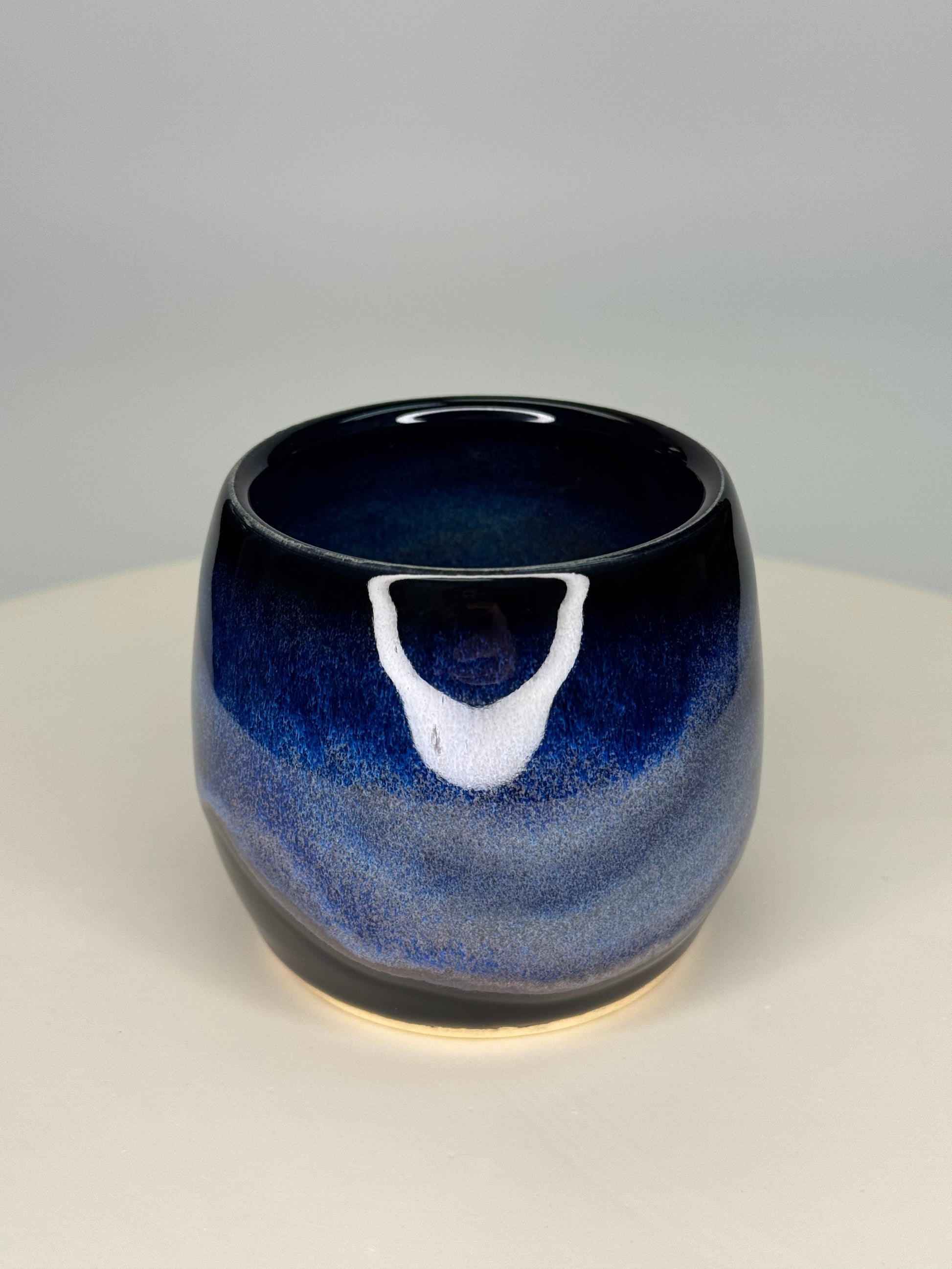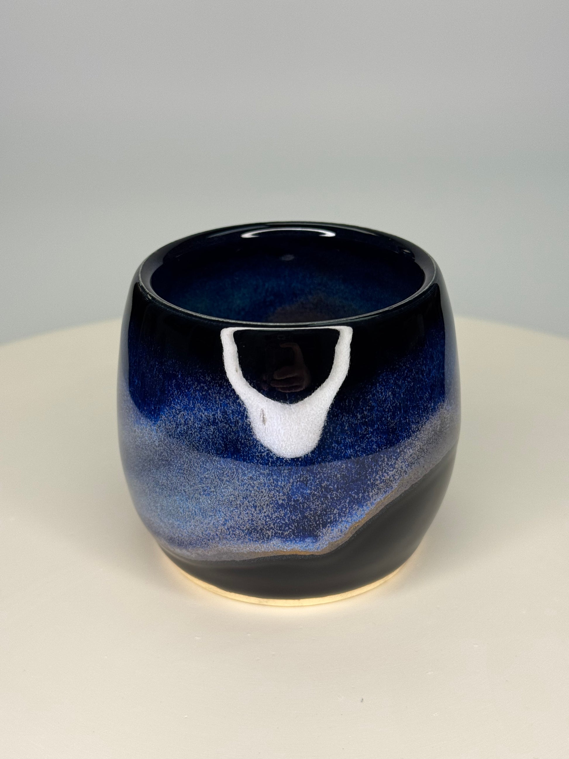 This sweet little 7oz cup is perfect for those who prefer to hold a smaller, cozy cup. Beautiful northern lights glaze combo. Hand thrown on the wheel with cone 6 stoneware clay. Microwave and dishwasher safe, but handwashing is recommended. Stoneware may get warm in the microwave.