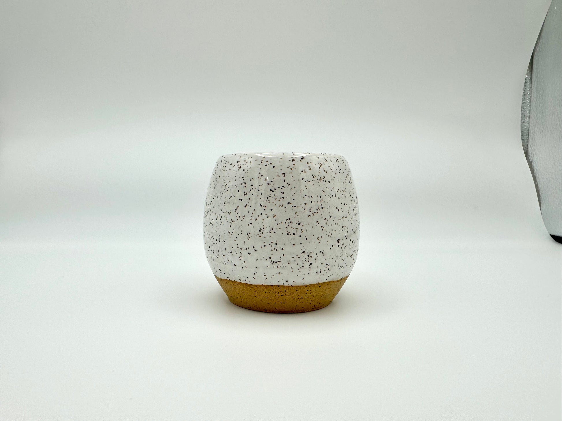 I have six of these beautiful little cups in stock. They fit perfectly in your hands to warm up with a cozy cup of tea, coffee, or cocoa. These can be used as a cup or a small vase.